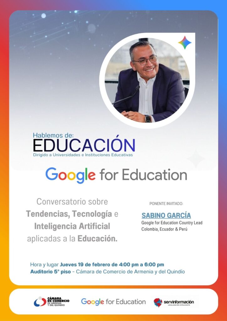 - La agenda contará además con la participación de María Alejandra Gallegos, Google Workspace Territory Manager para Colombia, Perú, Venezuela y Ecuador, y Natalia Castaño, vicepresidenta de producto y desarrolladora de negocios de Servinformación, quienes aportarán una visión técnica y aplicada de la IA en entornos empresariales para elevar la productividad en empresas grandes, medianas y micro. Este foro ya cuenta con más de 200 empresarios inscritos.