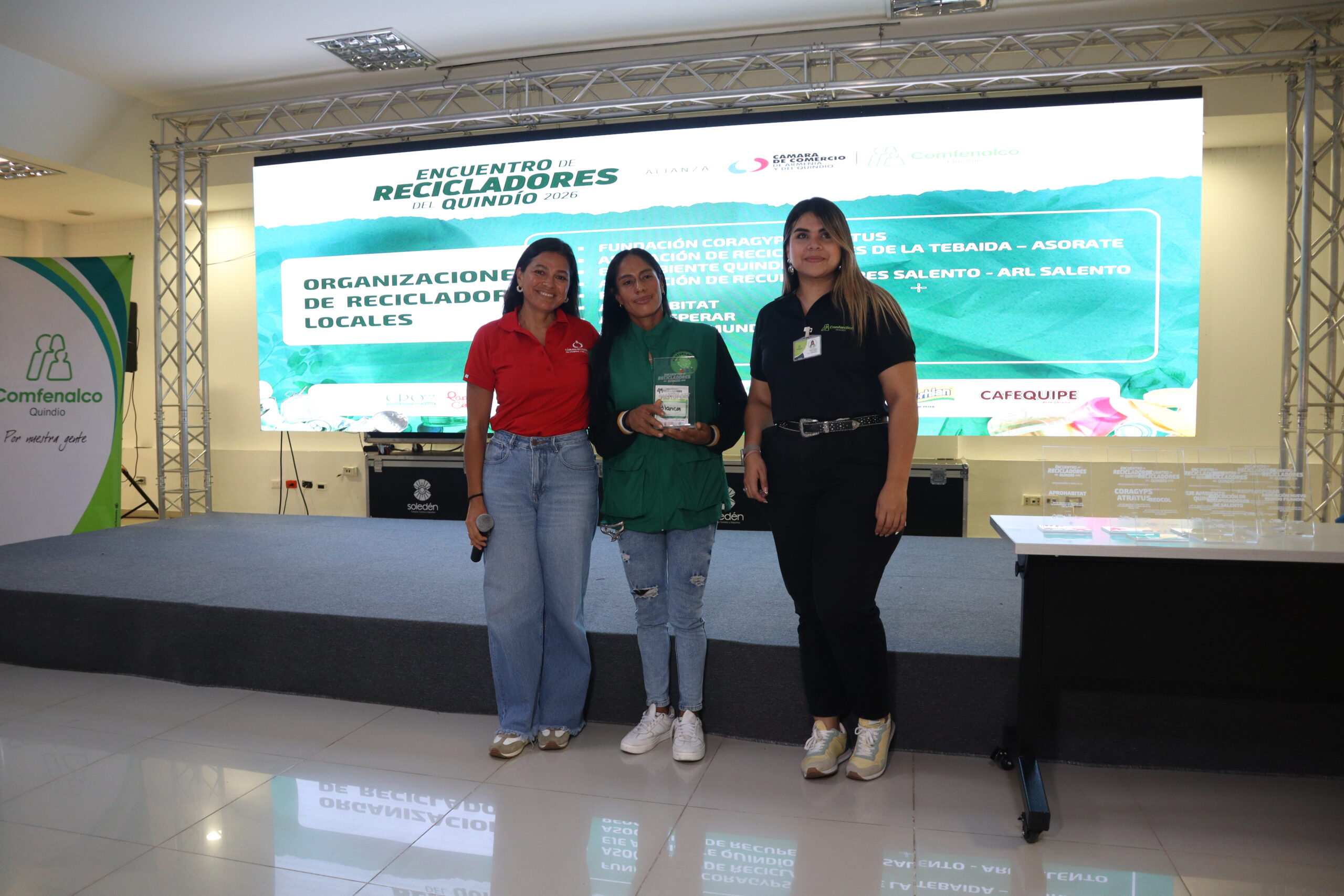 - Esta iniciativa fue liderada por Comfenalco y la Cámara de Comercio de Armenia y del Quindío, con el respaldo de la CRQ, Urbaser, Área Limpia, Smurfit Westrock, SENA, Berhlan, Parque del Café y Cafequipe, entidades que se sumaron aportando conocimiento, incentivos y bienestar para los asistentes.